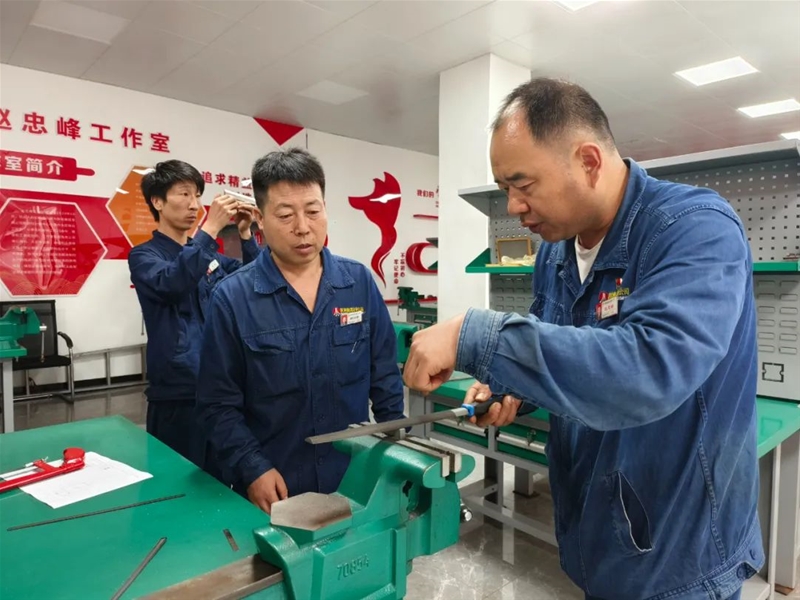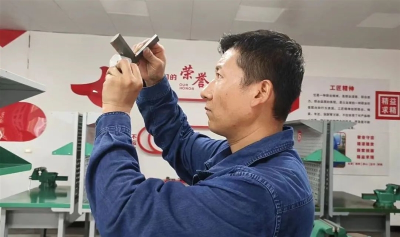 “此次比賽大家在打磨過程中一定要精準計算,將誤差降低在正負0.1mm之間……”在“操檢合一”鉗工技術(shù)比武現(xiàn)場,評委趙忠峰正為學員現(xiàn)場講解比賽要領(lǐng)。