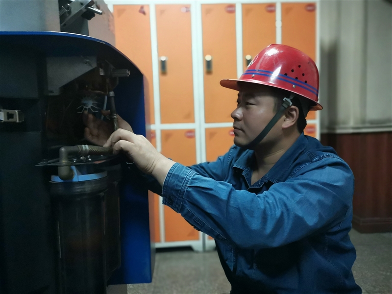 晚上8:00,操作間依然機(jī)器轟鳴,現(xiàn)場(chǎng)一片忙碌景象。班長(zhǎng)楊博頂著四十多度的高溫,認(rèn)真仔細(xì)排查設(shè)備隱患。在大家心目中,他是一位資深的光譜維修“醫(yī)生”。憑著自己的專業(yè)能力,他能夠及時(shí)判斷出設(shè)備問(wèn)題的癥結(jié)。這不,他正針對(duì)光譜儀排氣不暢、氬氣排氣管路堵塞、火花室下部的彎頭內(nèi)有異物的故障,巧妙采用更換排氣管和透明塑料管的方法,并定期對(duì)排氣管路進(jìn)行吹掃,取得了良好效果。